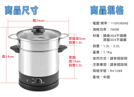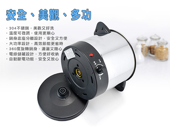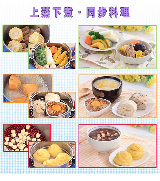 雙層蒸煮,結合湯鍋與蒸籠,360度旋轉鍋身,安全方便