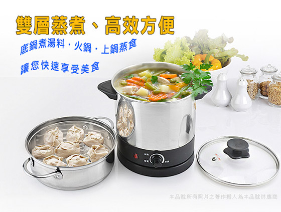 電火鍋底鍋煮湯料,上鍋蒸食,同步料理,快速享受美食