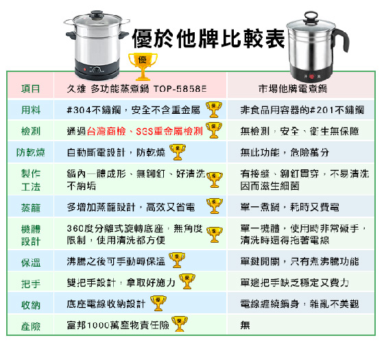 所以我都會上網搜尋比較一下久雄-新世代蒸煮多功能美食鍋三合一小巧電火鍋(TOP-5858E)的價格
